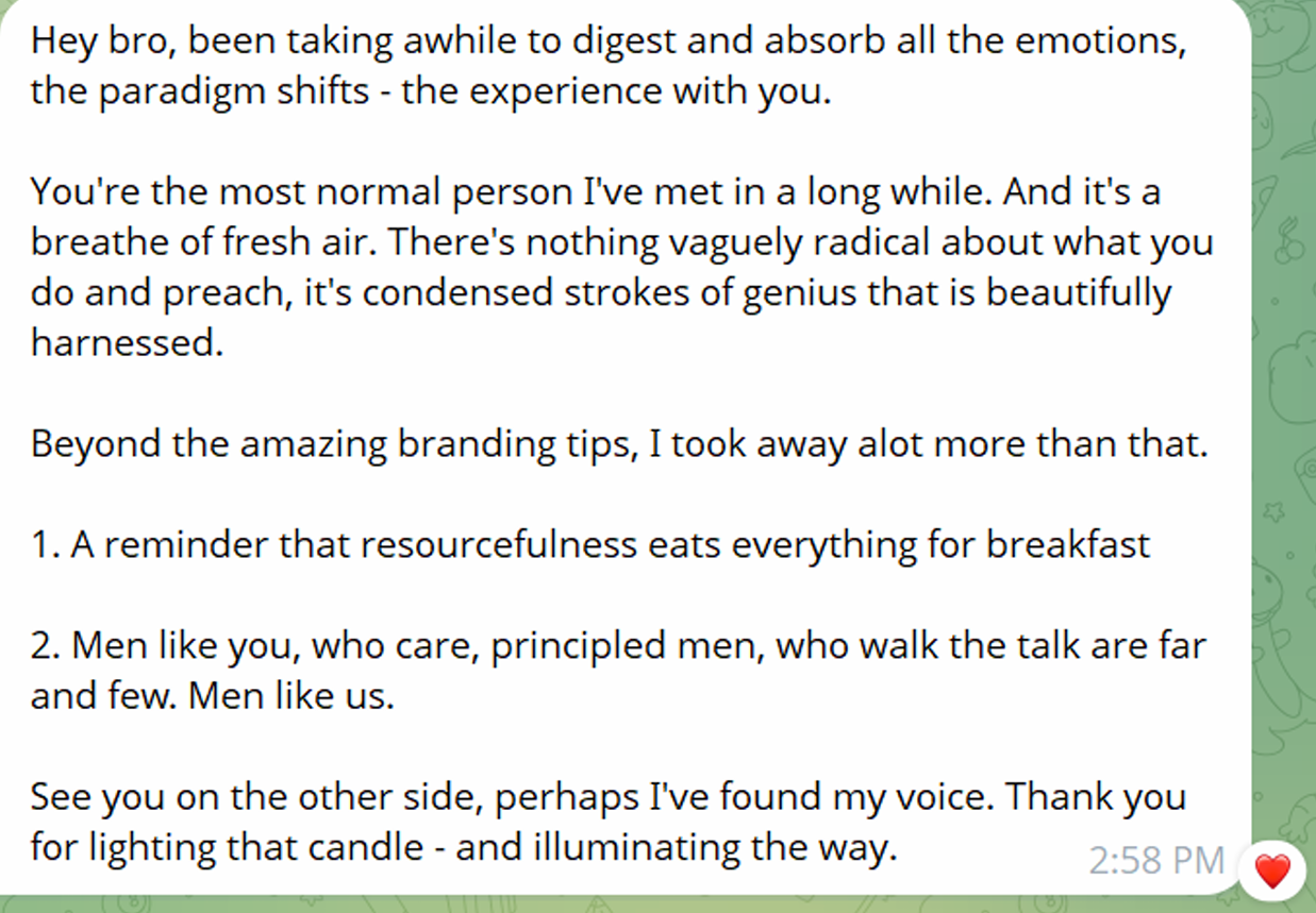 ✅ Given me tremendous spiritual satisfaction from the impact I've made and messages of gratitude